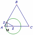 已知等边△ABC,边长为4,点D从点A出发,沿AB运动到点B,到点B停止运动.点E从A出发,沿AC的方向在直线AC上运动.点D的速度为每秒1个单位,点E的速度为每秒2个单位,它们同时出发,同时停止.以点E为圆心,DE长为半径作圆.设E点的运动时间为t秒.![]()