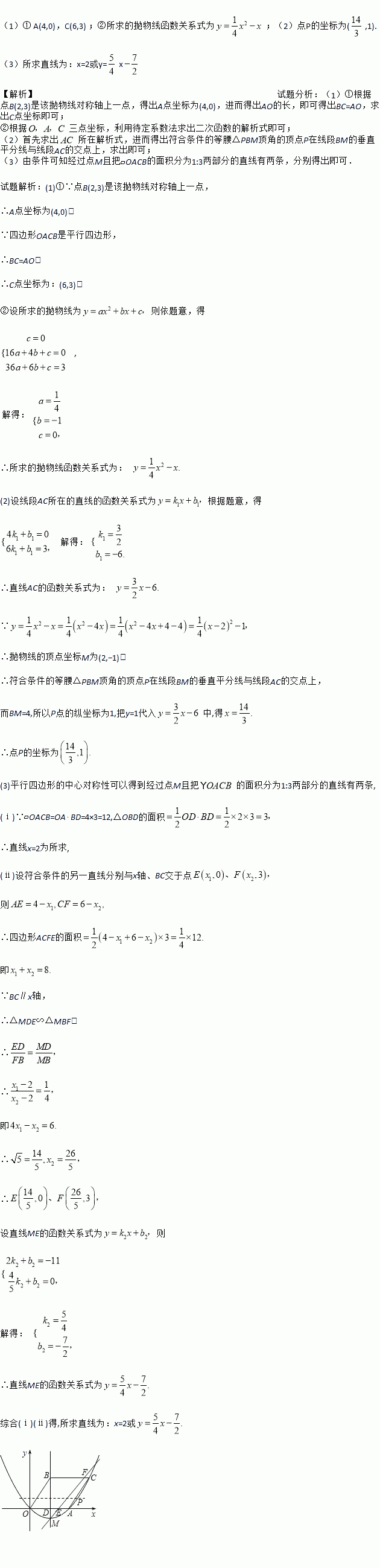 Èçͼ£¬ÒÑÖªÅ×ÎïÏß¾¹ýÔµãOºÍµãA£¬µãB(2,3)ÊǸÃÅ×ÎïÏß¶Ô³ÆÖáÉÏÒ»µã£¬¹ýµãB×÷BC¡ÎxÖá½»Å×ÎïÏßÓÚµãC£¬Á¬½áBO¡¢CA£¬ÈôËıßÐÎOACBÊÇÆ½ÐÐËıßÐÎ.