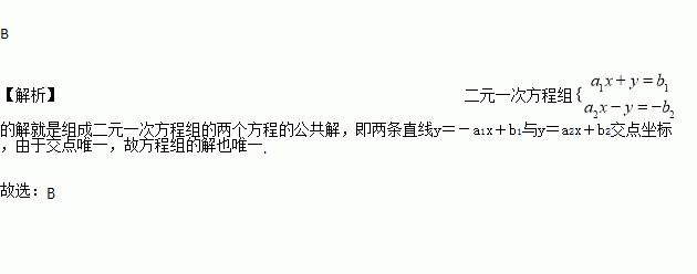 直线y=-a1x+b1与直线y=a2x+b2有唯一交点,则二元一次方程组的解的情况是( )