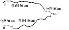 如图,某工厂与A、B两地有公路、铁路相连.这家工厂从A地购买一批每吨2000元的原料运回工厂,制成每吨7500元的产品运到B地.已知公路运价为2元/ (吨·千米),铁路运价为 1.5元/(吨·千米),且这两次运输共支出公路运输费2.6万元,铁路运输费15.6万元。