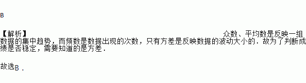 A. 众数 B. 方差 C. 平均数 D. 频数