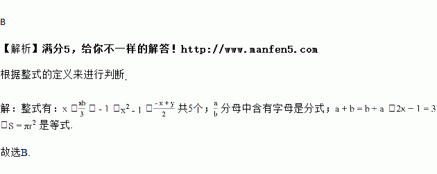 观察下列各式:,,,,,,,,,其中整式的个数是( )