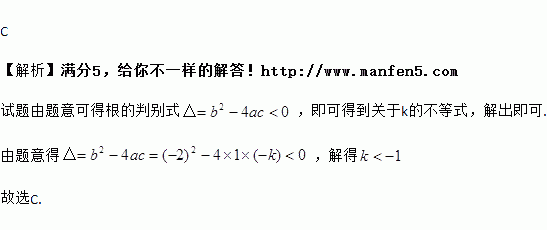 若关于x的一元二次方程x2-2x-k=0没有实数根,则k的取值范围是( )