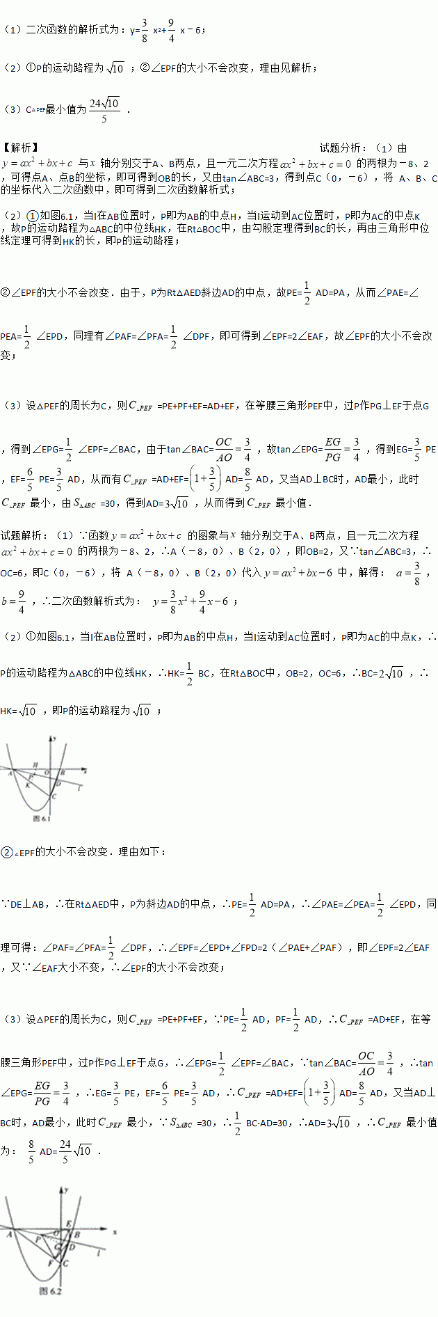 (3)在(2)的条件下,连结EF,求△PEF周长的最小值.