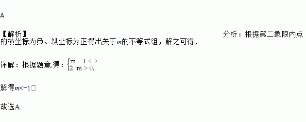 在平面直角坐标系中,若点P(,)在第二象限内,则m的取值范围为( )