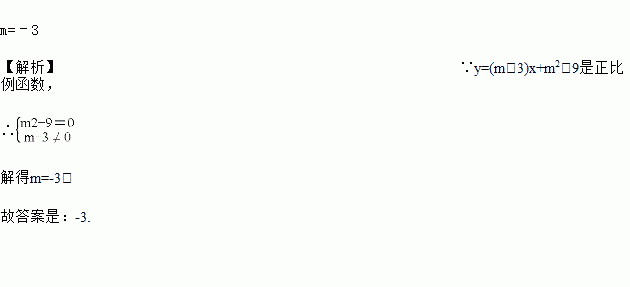 若一次函数y=(m﹣3)x+m2﹣9是正比例函数,则m的值为_______.