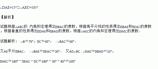 如图,△ABC中,AD是BC上的高,AE平分∠BAC,∠B=75°,∠C=45°,求∠DAE与∠AEC的度数.