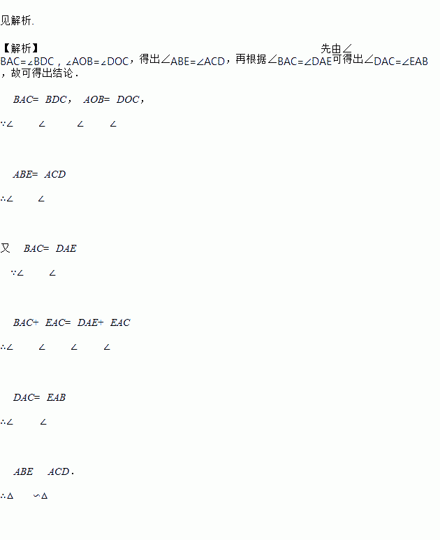 如图,点E是四边形ABCD的对角线BD上一点,且∠BAC=∠BDC=∠DAE.求证:△ABE∽△ACD.