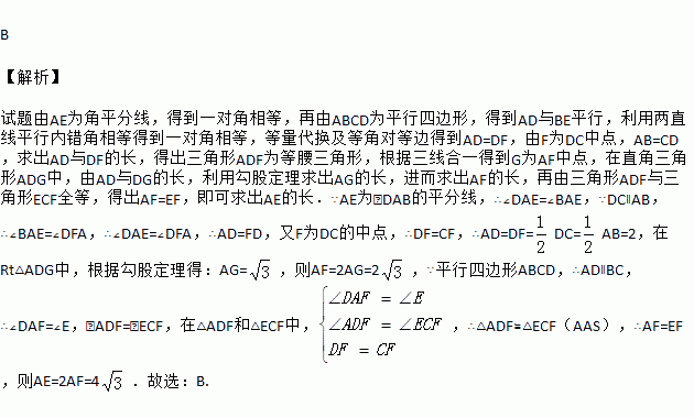 的平分线与BC的延长线交于点E,与DC交于点F,且点F为边DC的中点,![]()