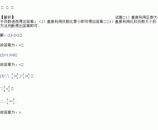比较大小:(1)-2____2, (2)-1.5____0,(3)