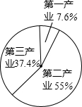 分析:(1)求出各产业所占的百分比,以及所占圆心角的度数,然后作出扇形统计图即可;
