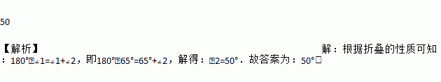 如图,将一张纸张折叠,若∠1=65°,则∠2的度数为____.