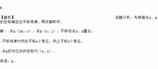 在平面直角坐标系中,已知点A(﹣4,0)和B(0,2),现将线段AB沿着直线AB平移,使点A与点B重合,则平移后点B坐标是( )
