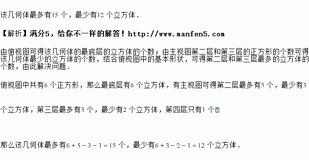 该几何体最少由多少个小立方体组成?最多由多少个小立方体组成.