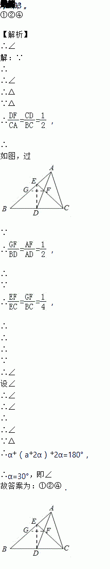 ①△ABC∽△FDC;②点F是线段AD的中点;③S△AEF:S△AFC=1:4;④若CE平分∠ACD,则∠B=30°,其中正确的结论有_____(填写所有正确结论的序号).