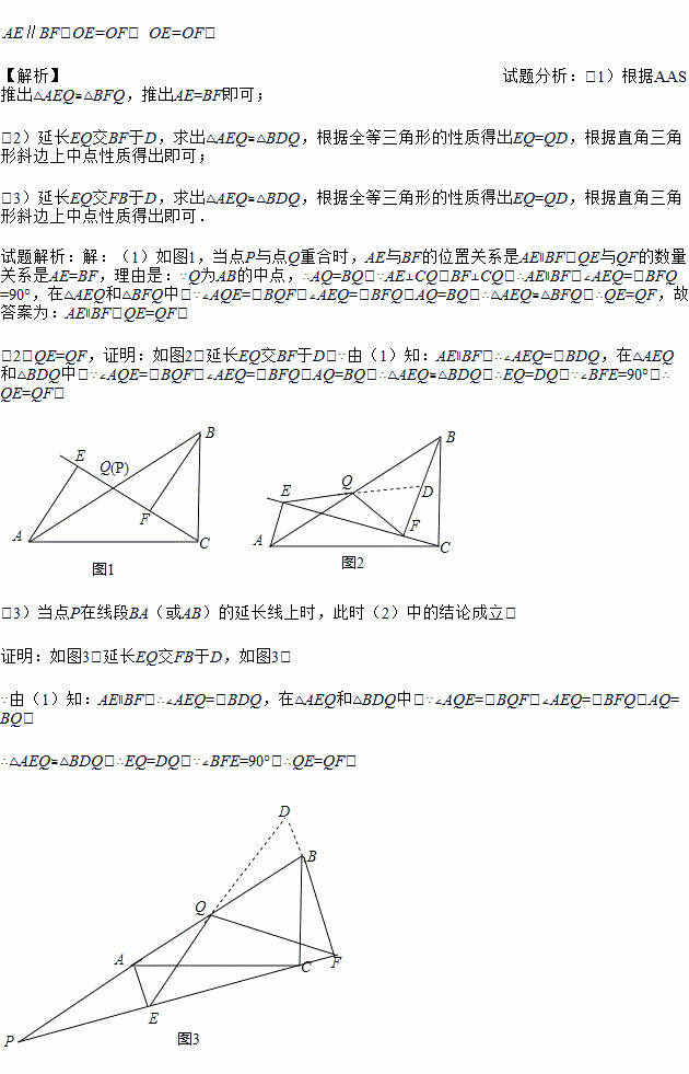 (1)如图1,当点D与点O重合时,AE与BF的位置关系是____________,OE与OF的数量关系是__________;