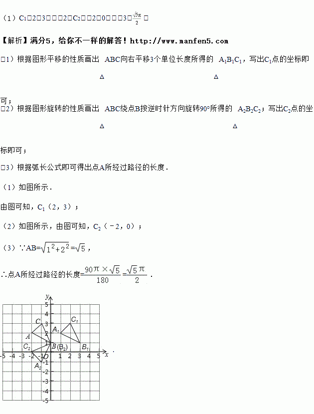 (2)画出将△ABC绕点B按逆时针方向旋转90°所得的△A2B2C2;写出C2点的坐标;