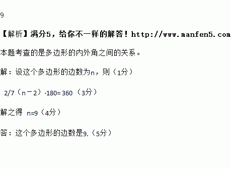 一个多边形的外角和是内角和的,求这个多边形的边数.