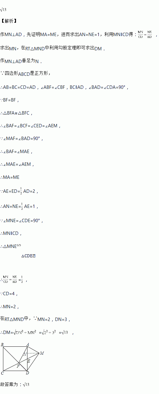 如图,边长为的正方形中,为的中点,连接交于,连接,过作交的延长线于,则的长为________.