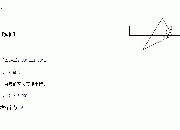 将直尺和直角三角板按如图方式摆放,已知∠1=30°,则∠2的大小是_____.