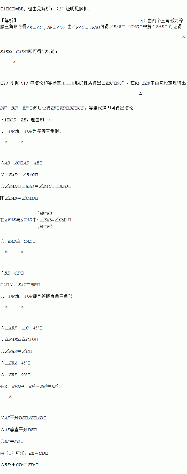 (2)若∠BAC=90°,求证:BF2+CD2=FD2.
