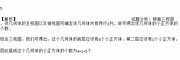 某几何体的三视图如图所示,则组成该几何体的小正方体的个数是_______