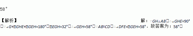 如图,已知,AB∥CD,直线EF分别交AB,CD于E、F,点G在直线EF上,GH⊥AB,若∠EGH=32°,则∠DFE的度数为____________.