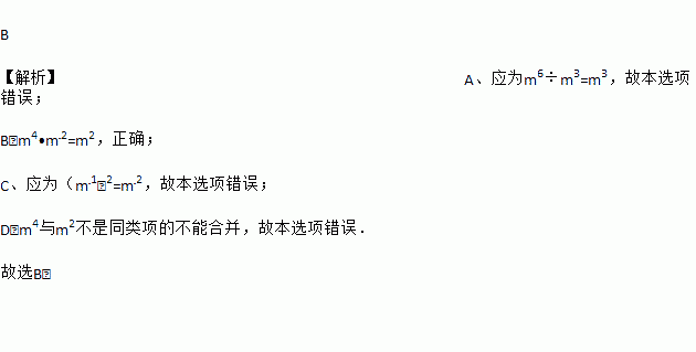 下列运算结果为m2的式子是( )