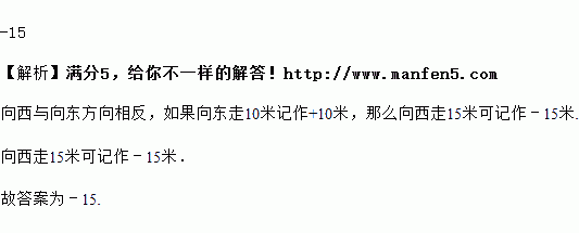 如果向东走10米记作+10米,那么向西走15米可记作_____米.