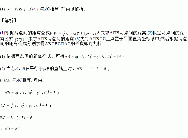 ,判断线段AB,BC,AC中哪两条是相等的?并说明理由.![]()