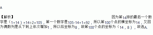 如图,在平面直角坐标系中,有若干个整数点,其顺序按图中“→”方向排列,如(1,0),(2,0),(2,1),(3,2),(3,1),(3,0),(4,0).根据这个规律探索可得,第100个点的坐标为( )