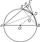 分析:(1)连接AD,OD,则∠ADB=90°,AD⊥BC;又因为AB=AC,所以BD=DC,OA=OB,OD∥AC,易证DF⊥OD,故DF为⊙O的切线;