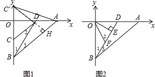 (2)分类讨论:当点C在y轴负半轴时,截取OC=OD,则CD=CB,所以∠1=∠2,而∠1=∠3,则∠2=∠3,根据平行线的判定即可得到CD∥AB;当点C在y轴正半轴时,作AC′⊥BD交y轴于C′点,延长C′D交AB于H,根据等腰三角形的判定得到BC′=BA,再根据“SAS”判断△BDC′≌△BDA,DC′=DA,∠BC′D=∠BAD,满足OA=OD+DA=OD+C′D=OB,根据三角形内角和定理可得∠C′OD=∠DAH=90°,则C′D⊥AB;