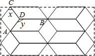 分析:根据菱形的性质得出∠ADC=180-x,∠CDB=y,进而根据∠ADC+∠CDB+∠ADB=360,得出y,x之间的关系.