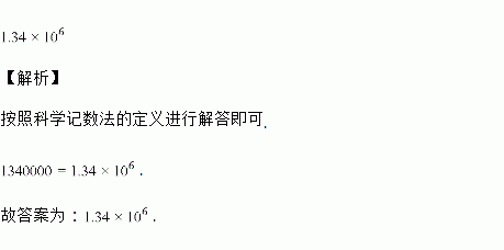 北京大力拓展绿色生态空间,过去5年,共新增造林绿化面积134万亩.将1 340 000用科学计数法表示为__________.
