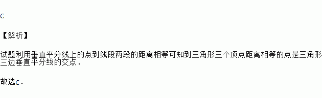 C. 三角形三边垂直平分线的交点 D. 三角形三条高线的交点