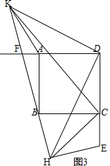 £¨3£©Èçͼ3£¬µ±µãE£¬F·Ö±ðÔÚÉäÏßDC£¬DAÉÏÔ˶¯Ê±£¬Á¬½ÓDH£¬¹ýµãD×÷Ö±ÏßDHµÄ´¹Ïߣ¬½»Ö±ÏßBFÓÚµãK£¬Á¬½ÓCK£¬ÇëÖ±½Óд³öÏß¶ÎCK³¤µÄ×î´óÖµ£®