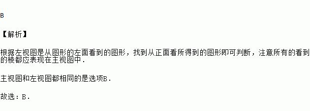 下列图是由4个大小相同的小立方块搭成的几何体,其中主视图和左视图相同的是