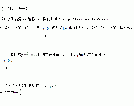 已知反比例函数的图象在其每一分支上,随的增大而增大,则此反比例函数的解析式可以是__________.(注:只需写出一个正确答案即可)