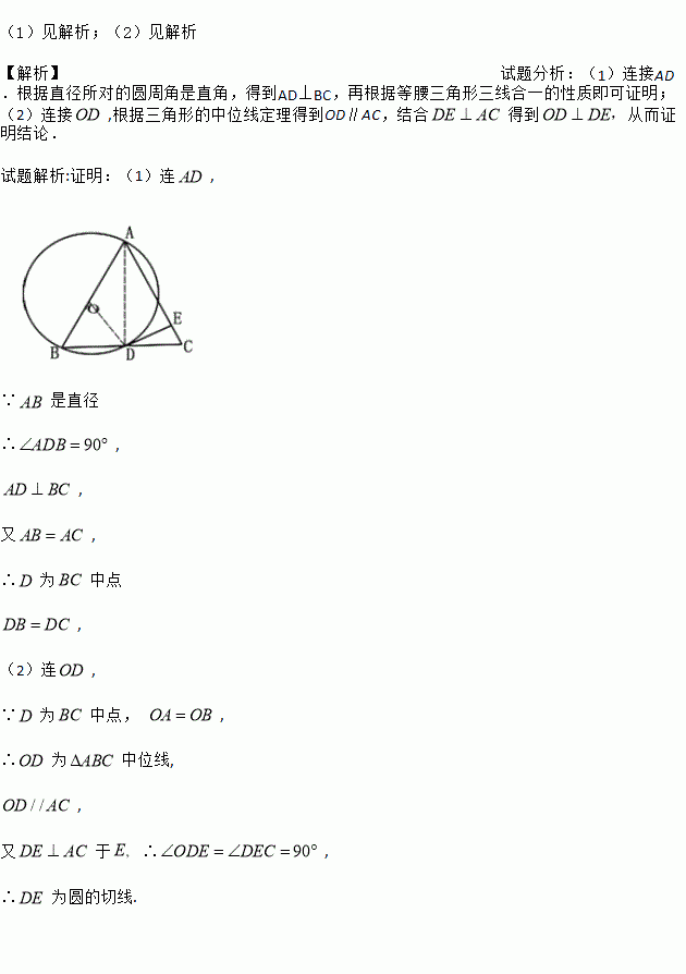 (8分)如图,以等腰的腰为⊙的直径交底边于, 于.