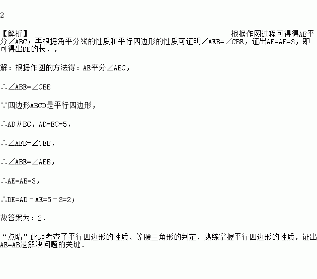 PQ的长为半径作弧,两弧在∠ABC内交于点M,连接BM并延长交AD于点E,则DE的长为_____.