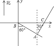 分析:根据题意,建立坐标系,以B点为坐标原点,按要求画出A点的位置,如下图所示.