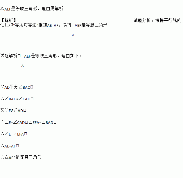 如图,△ABC中,AD平分∠BAC,EG∥AD,找出图中的等腰三角形,并给出证明.