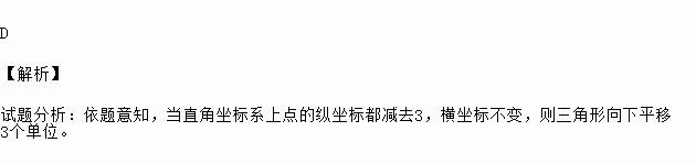 在平面直角坐标系中,将三角形各点的纵坐标都减去3,横坐标保持不变,所得图形与原图形相比( )