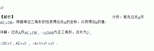 如图,点A在函数y=(x>0)的图像上,点B在x轴正半轴上,△OAB是边长为2的等边三角形,则k的值为______.