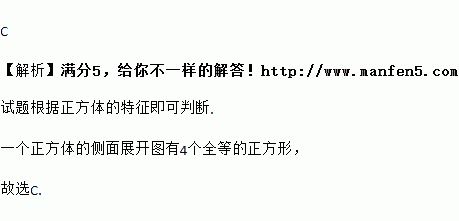 一个正方形的侧面展开图有( )个全等的正方形.