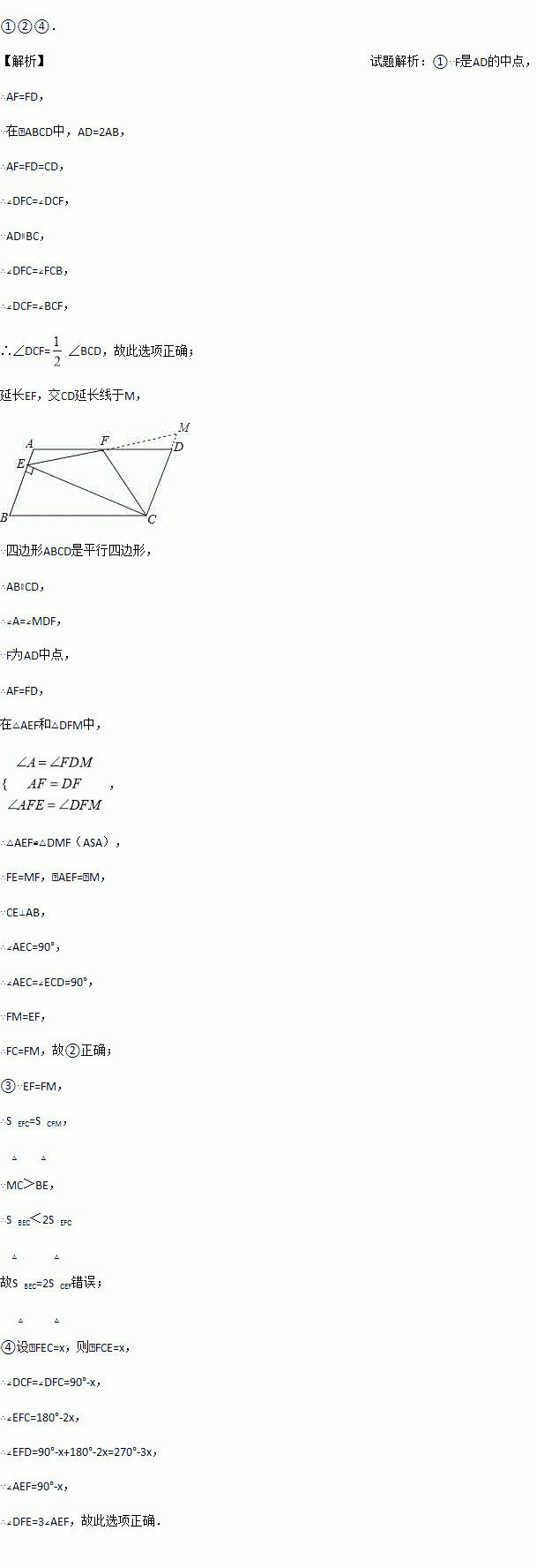 ∠BCD;②EF=CF;③S△BEC=2S△CEF;④∠DFE=3∠AEF.