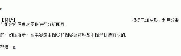 如图,图案⑥是由图①~⑤中五种基本图形中的两种拼接而成的,则这两种基本图形是( )