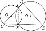 已知:如图,⊙O1和⊙O2相交于A、B两点,直线AO1交⊙O1于点C,交⊙O2于点D,CB的延长线交⊙O2于点E,连接DE.已知CD=8,DE=6,求CE的长.