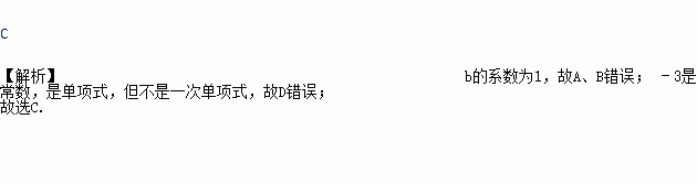 A. b的指数是0 B. b没有系数 C. a是单项式 D. ﹣3是一次单项式